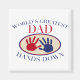 Um presente excelente para que o Pai saiba que ele é o maior Pai do mundo em Dia de os pais ou em qualquer outra ocasião. A nossa design de Mão para Baixo apresenta um par de impressões de Mão Vermelha e Azul