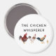 Design magneta engraçado para amantes de galinha e fazendeiros com ilustração aquarela de frangos e pintinho com texto que diz "o galinheiro"