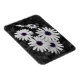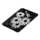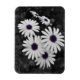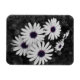 Esta imagem mostra um aglomerado de margaridas com pétalas brancas e polos púrpuros-azuis em greve. O fundo e a folhagem estão em preto-e-branco, criando um efeito colorido seletivo que enfatiza as cores vívidas dos centros das flores. O contraste entre os arredores dessaturados e as delicadas flores dá à imagem uma qualidade artística, quase surreal, destacando a beleza e a complexidade da natureza.