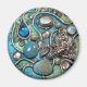 Íman redondo com a imagem de uma sereia de prata, uma concha e um conjunto de bolhas em azul e verde iridescentes. Veja toda a coleção de ímãs nos TOUCHES ESPECIAIS | Seção Favoritos para festas.