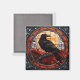 Apresentado em vidro colorido, um raspão assustador e assustador vira seu olhar no espectador.