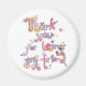 Uma nota de "obrigado" numa imã de geladeira para o cuidado, amor e apoio de um amigo. design com flores, fitas e borboletas bonito.
