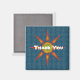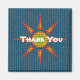 Um sol brilhante, sudoeste, mosaico, laranja e amarelo é apresentado contra um fundo azul escuro enfeita este ímã de geladeira apreciável. O sol amarelo e laranja vívido está centrado neste ímã barato junto com o "Obrigado" aparecendo através do centro do sol. O texto pode ser personalizado se desejar.