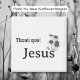 Um design preto e branco moderno com uma simples ilustração desenhada dos girassóis, com o texto "Obrigado, Jesus." Tipografia retrô-estilo.