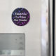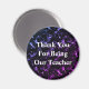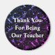 Este ímã de apreciação do professor apresenta um fundo vibrante em roxo brilhante e azul. "Obrigado por ser nosso professor" é apresentado no centro em branco e pode ser personalizado de acordo com suas necessidades. Este é um magente barato que faz um presente de apreciação único para o seu professor durante a semana de apreciação do professor ou no final do ano.