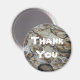 Ímanes de apreço são uma maneira barata de expressar seus obrigados a alguém especial. O belo padrão de um pedaço de madeira derivada vestida de vento e água fornece o design rústico neste ímã redondo. As espirais artísticas e cores desta madeira criam um fundo neutro em termos de gênero para "Obrigado", que pode ser facilmente personalizado se quiserem.
