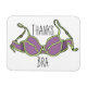 Um sutiã verde limão roxo e chave, com o texto dizendo, "Obrigados Bra."