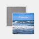 Um ímã quadrado com uma fotografia tirada na costa de Oregon do lindo oceano Pacífico azul, ondas batendo na areia e rochas balançadas. Personalize adicionando seu nome. Perfeito para amantes de praia.
