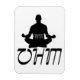 Uma silhueta de um homem na posição de lótus, fios de fazer como os usados em atomizadores reparáveis. Abaixo dele está a palavra Ohm, lembrada das unidades de resistência elétrica (sempre importante para os vapores) e da sílaba sagrada do hinduísmo e do budismo.