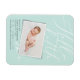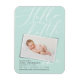 Olá, pequeno anúncio de 1 foto-nascimento moderno. Texto elegante de design de tipografia de script moderno, efeito fotográfico de vintage impresso. Cor aqua.