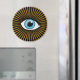 Olho Azul Solar ilustração ocular mesmerizante do olho azul com raios solares ouros escuros. mitologia um aspecto do Sol é representado como um olho contra um fundo de raios solares a vigiar à volta. Símbolo de nova era do símbolo da consciência psique e inteligência consciente ou a mente consciente de mau com símbolo de proteção contra o olho mau da água ou símbolo da água