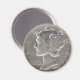 Esta moeda de Mercúrio de 1945 está em circulação há muito tempo. Com esta moeda, você poderia comprar uma xícara de café, fazer uma viagem de ida e volta no Staten Island Ferry ou pegar um hambúrguer! Este design de safra faz um ímã único para o seu frigorífico ou qualquer outro uso.