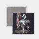 Uma bela fotografia da vaquinha num palomino e cavalo de pintura branco segurando a bandeira americana durante o Hino Nacional no Stampede do Rio Cobra de 2014.