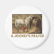 É uma design de oração de Jockey com jockey rezando no celeiro com seus cavalos e cachorros, por segurança, seus entes queridos, e uma viagem segura. Slogan roupa, ímãs e presentes.