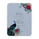 Lindo pavão com flores azul turquesa e azuis, flores borgonha, folhas verde-sage características neste outono, itens de casamento de inverno. Parte de uma coleção maior que inclui convites de casamento econômicos, avisos de data, RSVPs, cartões de fotos de agradecimento, presentes para a noiva e para o casamento, e muito mais. Para um guia detalhado GRATUITO de planejamento de casamento de inverno, visite weddingdesignchic.com.