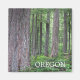 Imagem decorativa e quadrada apresentando uma imagem cênica de árvores altas de Douglas Fir das florestas esmagadas e verdes do estado noroeste do Pacífico, Oregon. Faz um viagem de souvenir excelente!