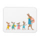 Faça alguém sorrir esta Páscoa com uma imã de geladeira bonita e antiquada que apresenta uma família de lebres numa caçada de ovos de Páscoa, vestida com roupas coloridas de primavera. A design inspira-se no trabalho da ilustradora vitoriana Kate Greenaway. O texto dentro diz 'Felz pascoa'.