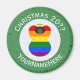 Íman redondo para decoração de Natal com um anjo africano vestido na bandeira do Orgulho gay Rainbow. O anjo é encontrado dentro de um círculo fractal branco de quadrados pretos com um fundo de quadrados verdes pretos. Adicione seu próprio texto, se desejar. Personalize com um nome e personalize com o ano. Coisa divertida. Mostre seu Orgulho gay durante o feriado. Adorável caçador de estoque também.