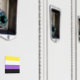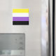 A bandeira não-binária foi criada em 2014 pelo ativista Kye Rowan. Cada cor de faixa representa diferentes tipos de identidades não-binárias: Amarelo para pessoas que se identificam fora do binário de gênero, branco para pessoas não binárias com múltiplos sexos, roxo para as que têm mistura de sexos masculinos e femininos e preto para os indivíduos agendados.