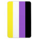 A bandeira não-binária foi criada em 2014 pelo ativista Kye Rowan. Cada cor de faixa representa diferentes tipos de identidades não-binárias: Amarelo para pessoas que se identificam fora do binário de gênero, branco para pessoas não binárias com múltiplos sexos, roxo para as que têm mistura de sexos masculinos e femininos e preto para os indivíduos agendados.
