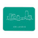 Este design apresenta um desenho desenhado manualmente do horizonte de Orlando sobre um fundo turquesa.