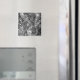Os ornamentos de esfera de Disco de vários tamanhos formam uma pilha caótica nesta única fotografia em preto e branco. As bolas de espelhos brilhantes refletem sombras claras ou escuras de cada uma de suas pequenas facetas espelhadas. Os ornamentos da bola reluzente descansam em cima das terras com miçangas dodecaedro prateadas refletoras. Fotografia digital, preta e branca. Copyright © 2013 Claire E. Skinner. Todos os direitos reservados.