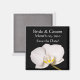 Uma orquídea branca contra fundo preto. Personalize este ímã com os seus nomes e data para salvar o anúncio de data!