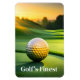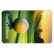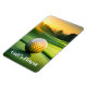 Este ímã flexível é mostrado com uma impressão fotográfica de uma bola de golfe em exposição para os melhores do golfe.