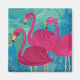 Esta trabalho de arte é feita pelo artista Sherin Hylan. Seu foco principal é o trabalho de arte de criado digitalmente com ênfase na arte do fazer que utiliza uma paleta de cores largas. Ela usa seu estilo pessoal para criar pedaços vibrantes de animais e natureza. O endereço do site é www.distortionart.com e se você estiver interessado em outros produtos ou impressões maiores, entre em contato com ela em info@distortionart.com. Três amigos felizes do flamingo são retratados neste brilhante e colorido design. Eles estão em um cenário tropical nas belas águas azul-verdes.
