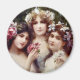 Três mulheres jovens adoráveis adoradas com flores bonito representam as três graças. Esta arte romântica da safra é de Emile Vernon.