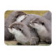 Um design fotográfico de três lontras muito bonitas.