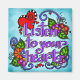 Por vezes, todos temos de nos lembrar de ouvir o nosso coração em vez de todos os outros. Este design maravilhoso e caprichoso pode servir como um lembrete. "Ouça o seu coração" mostra o teste com letra de mão, acentuado por corações brancos e designs de flores de rabisco sobre um fundo azul de lavagem.