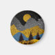 design de paisagem da montanha abstrato em tons de ouro, preto e azul em tons negros, com um luar e pássaros.