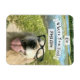 Este ímã mostra uma fotografia de um feliz cão que recupera o ouro, que está vestindo óculos de sol e sentado em frente a um lago. A citação inspiracional diz, "Vá Onde Você Se Sente Mais Vivo."