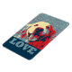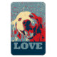 Este ímã apresenta um close-up de um sorridente cão que recupera o ouro, feito no estilo de estêncil "esperança" com cores vermelha, branca e azul, juntamente com a palavra amor.