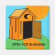 Ilustração de uma estufa de laranja com porta aberta e lua crescente