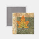 Íman quadrado com a imagem de uma folha de bordo verde, laranja e amarela em verde e marrom colchado. Veja a coleção inteira do Magnet de Ação de Graças na categoria HOME na seção HOLIDAYS.