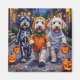 Ovelhas Ovelhas Ovelhas Cães de Ovelhas Inglês vestidos com roupas lúdicas de Halloween carregar baldes de abóbora enquanto trick-or-tratando sob o céu iluminado pela lua. Este design festivo destaca o casaco, carinhoso, carinhoso, e gentil personagem da raça, capturando perfeitamente a atmosfera assustadora e divertida da noite de Halloween. Uma celebração fofa e encantadora para amantes de cães e fãs de Halloween.