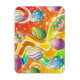 Ovos de Páscoa brilhantes e multicoloridos em Fundo Ornamental