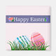 Ovos riscados coloridos estão sentados em grama verde sobre fundo de lavanda com faixa de "Primavera". Clique em "Personalizar" para adicionar texto personalizado ou para alterar a cor do plano de fundo, se desejar.