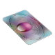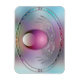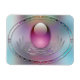 Um design azul pastel, lavanda e rosa com um ovo rosa translúcido em uma moldura de filigrana prateada, circulado por uma moldura oval prateada clara com quatro outras gemas lisas como ovos coloridos.