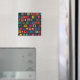 A peça original foi criada por meio de mídias mistas de óleo e tinta acrílica em uma canvas de 16inx20in. Esta pintura me lembra de continuar, nunca desistir, e focar no que posso controlar. Espero que os imperfeitos padrões quadrados e circulares sirvam também para vos recordar que a perfeição é inatingível, por isso, não há problema em deixá-la ir!