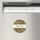 Obrigado imã com um padrão de na moda. Manchas negras negras exóticas num fundo de ouro. Um estilo selvagem mas elegante. Um quadro retangular creme com bordas falsas em folha de ouro colocadas sobre cima com o obrigado.