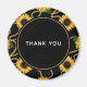 Obrigado ímã com um padrão elegante e na moda. Bonito girassóis amarelos e folhas verdes cercadas por delicadas cadeias de ouro. Fundo preto. Um círculo preto com uma borda falsa dourada colocada sobre cima com o seu dentro de texto.