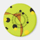 Um padrão geométrico abstrato preto e verde-anca com círculos modernos e linhas contemporâneas curvas em amarelo e castanho.