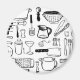 Este padrão temático Cozinha e cozinhar vem de um trecho de desenho no qual eu sentei e pintei tantos itens da cozinha da memória quanto pude. O resultado final teve uma sensação retrógrada, e eu acho que parece adorável em um conjunto de canecas