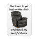 Quando o Pai se levanta para assistir TV, ele pode esquecer que quando ele terminou de pegar uma cerveja de gengibre ou algo assim, ele tem uma cadeira esperando por ele. Não apenas qualquer cadeira: Pai Boa Cadeira. Ele trabalhou duro para aquela cadeira e agora não vai esquecê-la porque você comprou um ímã dela e colocou na geladeira dele.