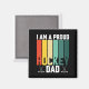 O ímã do Pai de Hockey orgulhoso apresenta várias cores verdes, esbranquiçadas, amarelas e cor de laranja torrado em um fundo preto com texto branco que diz que Eu sou um Pai de Hóquei Orgulhoso!