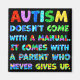 Mensagem inspiradora de "AUTISM não vem com um manual. Vem com um pai que nunca desiste" para apoiar pais orgulhosos do Autismo.