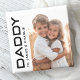 Imã de geladeira com sua foto personalizada e o texto "Pai" em uma fonte moderna com os nomes das crianças ou outro texto personalizado à direita. Cores pretas e brancas ou personalizadas.